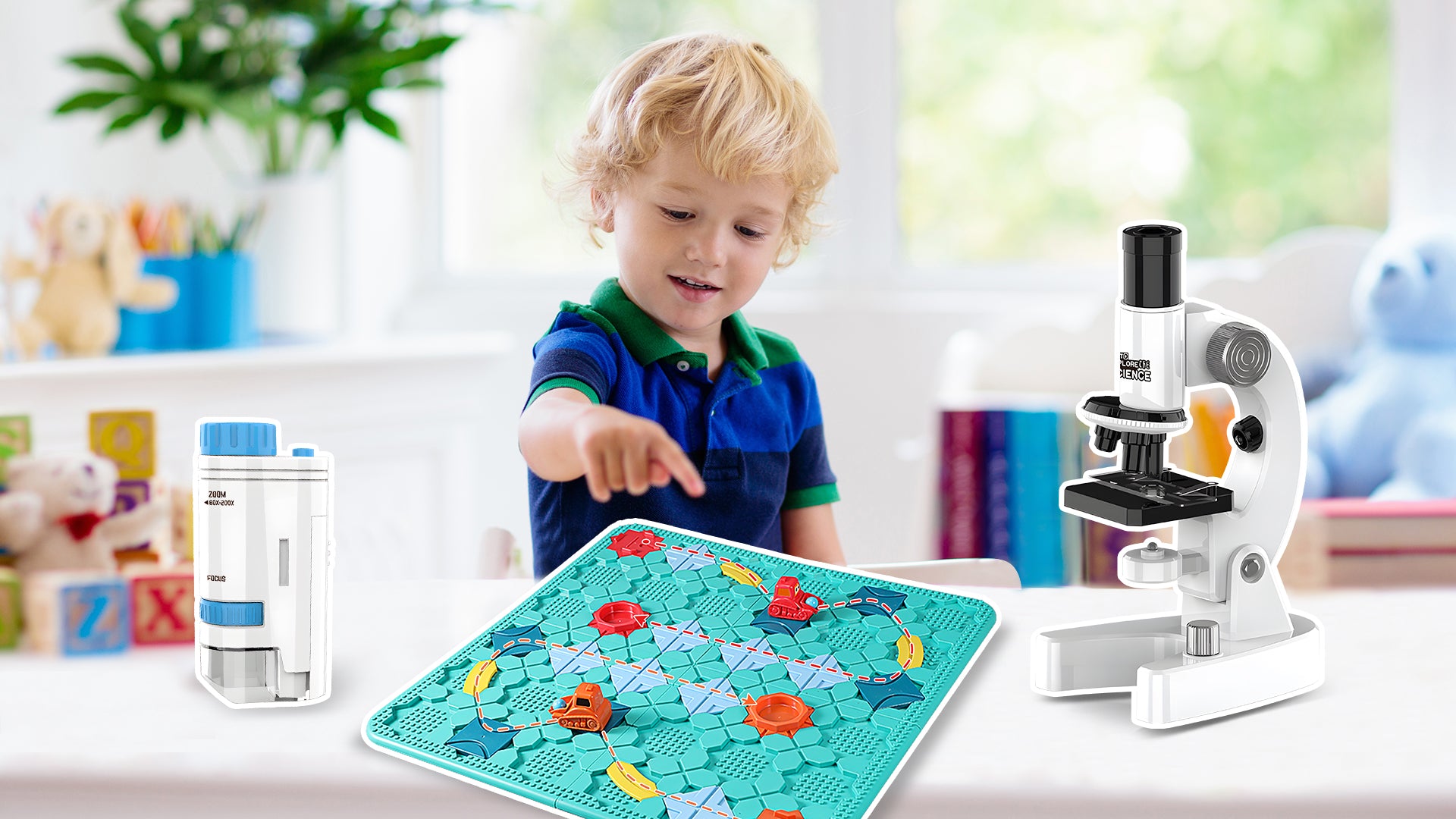 Microscope for Kids Science Kit for Children 200x-4800x with Slides and Accessories Ages 5 Plus Childs (White)