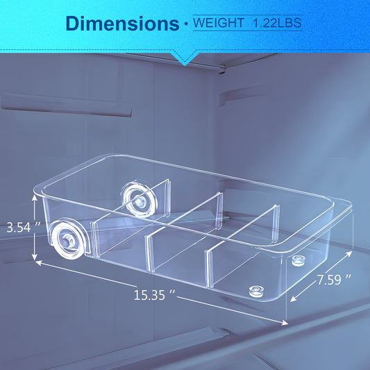 Refrigerator Organizer Bins and Storage Freezer Drawer Clear for Pantry with Wheels and Adjustable Dividers Caddy 7.6" Wide-2 Pack
