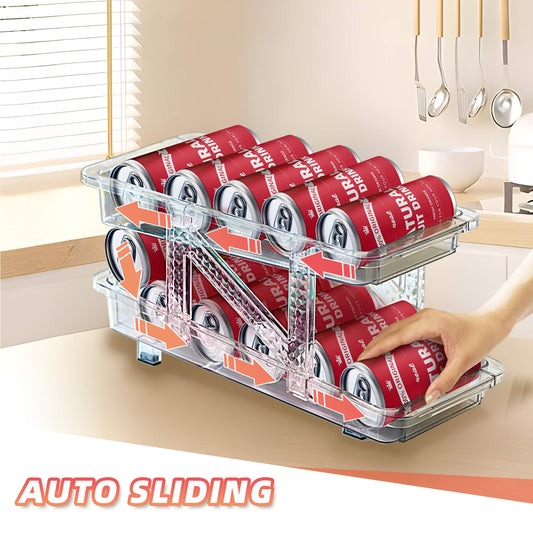 Soda Can Dispenser Organizer for Refrigerator and Stackable Pop Can Holders Drink Storage for Pantry Wide Adjustable (2-Pack Clear)