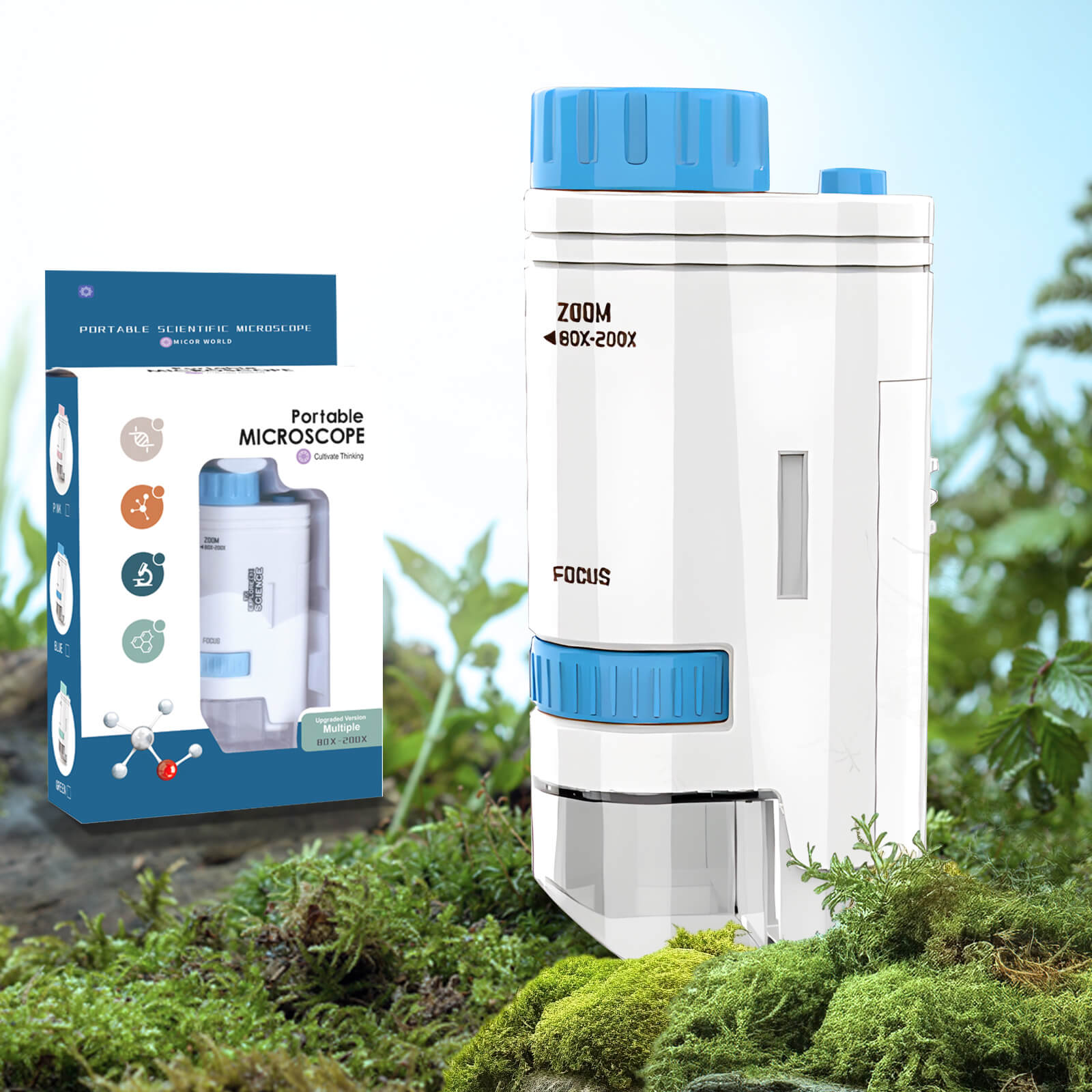 Mini Scope for Kids and the Original Portable Microscope for Children Your Little Scientist Pocket Handheld Toy with 4pcs Slides 80x-200x (Blue)