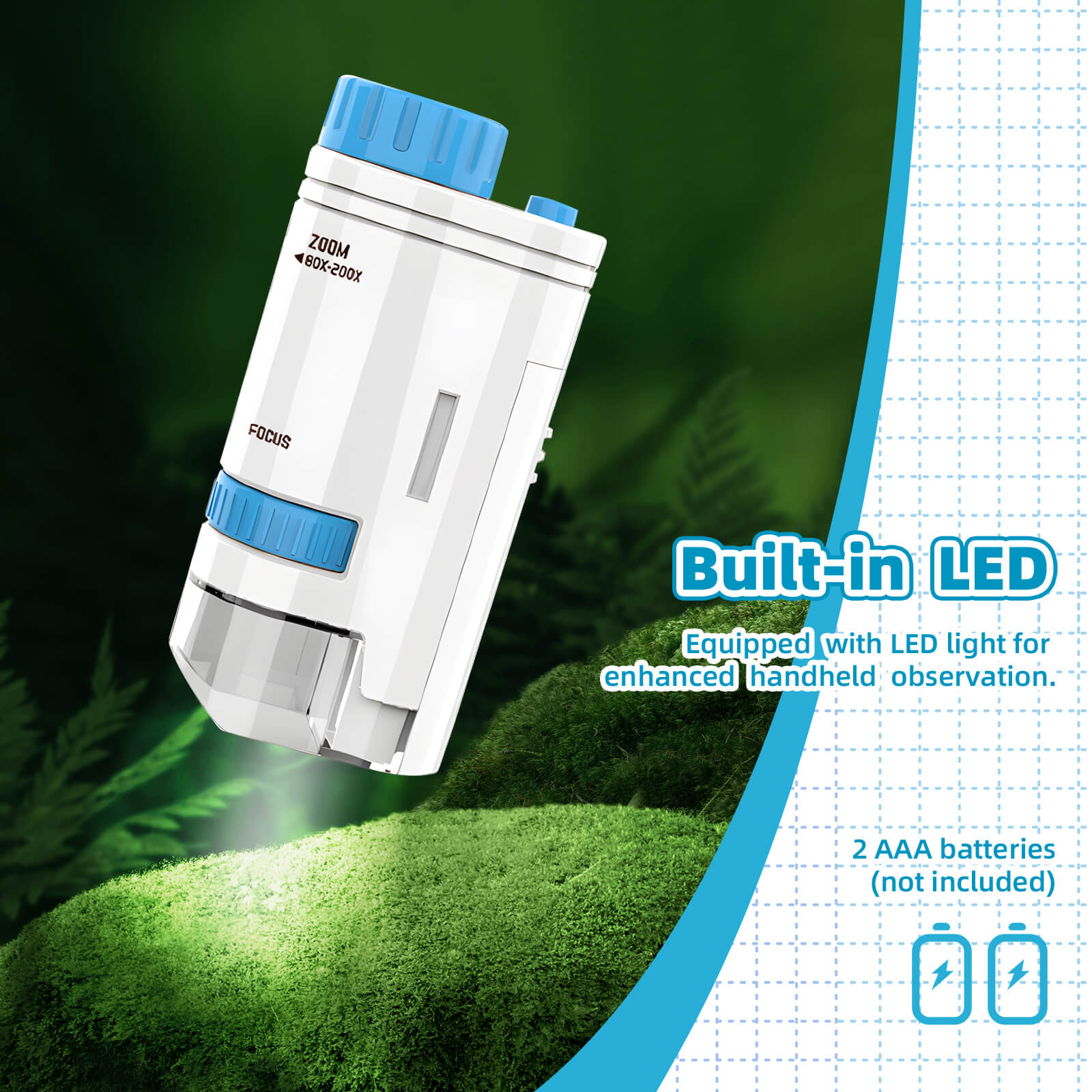 - 【 Built-in LED 】Equipped with an LED light for enhanced hand held observation; powered by 2 AAA batteries (not included).